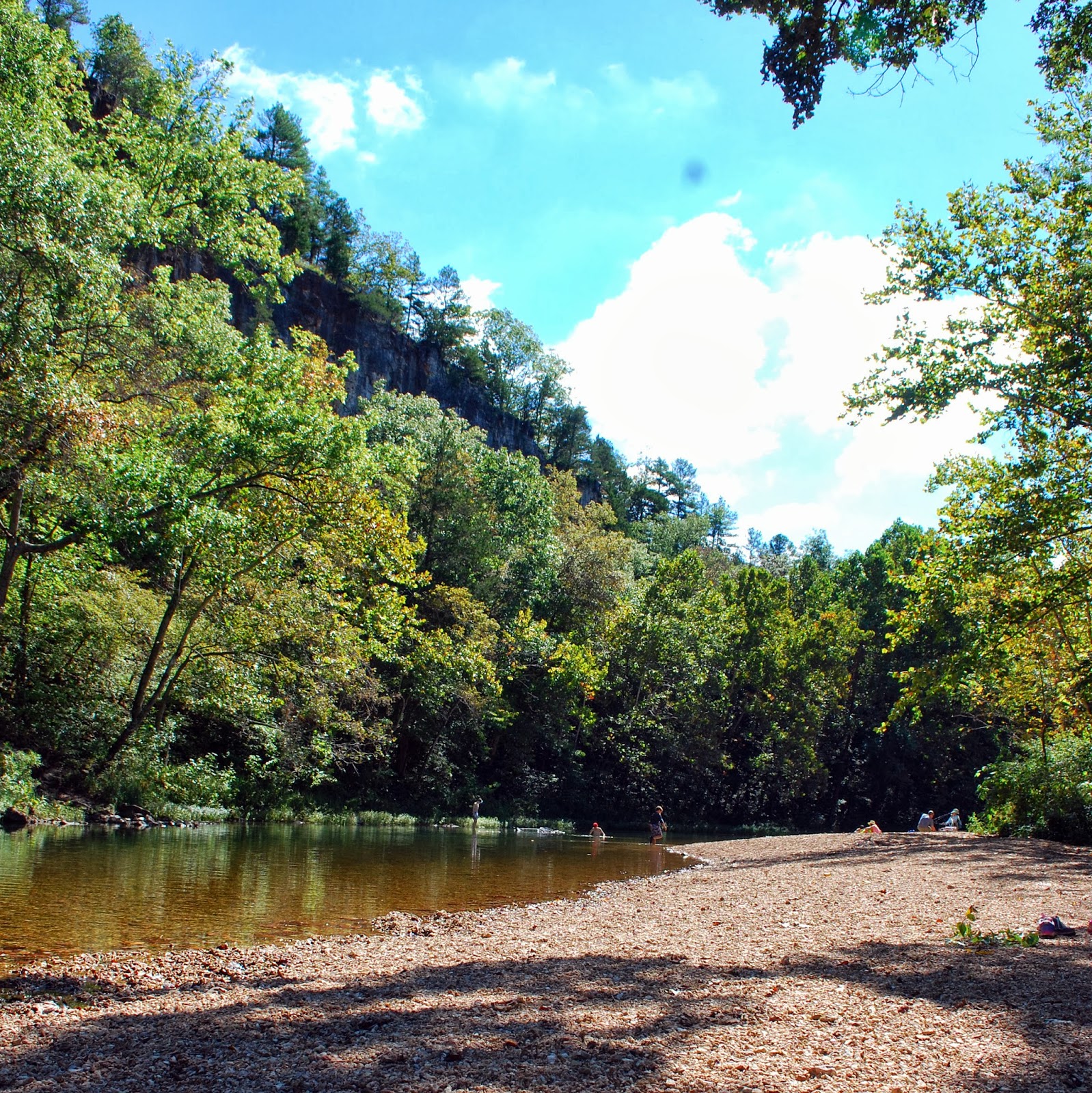 We had the place to ourselves. It was shallow, clean and clear, and the kids took turns in the kayak, floating around the area.