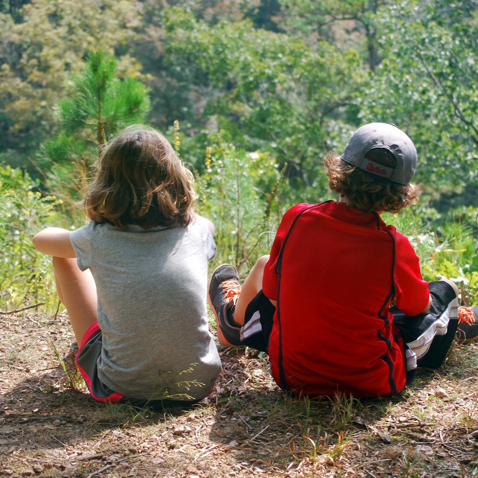 The leaves were just starting to turn, and some bright reds one were scattered along the path like sign posts. The little ones looked for sparkling fairy gold and came down with heavy pockets of precious rocks.