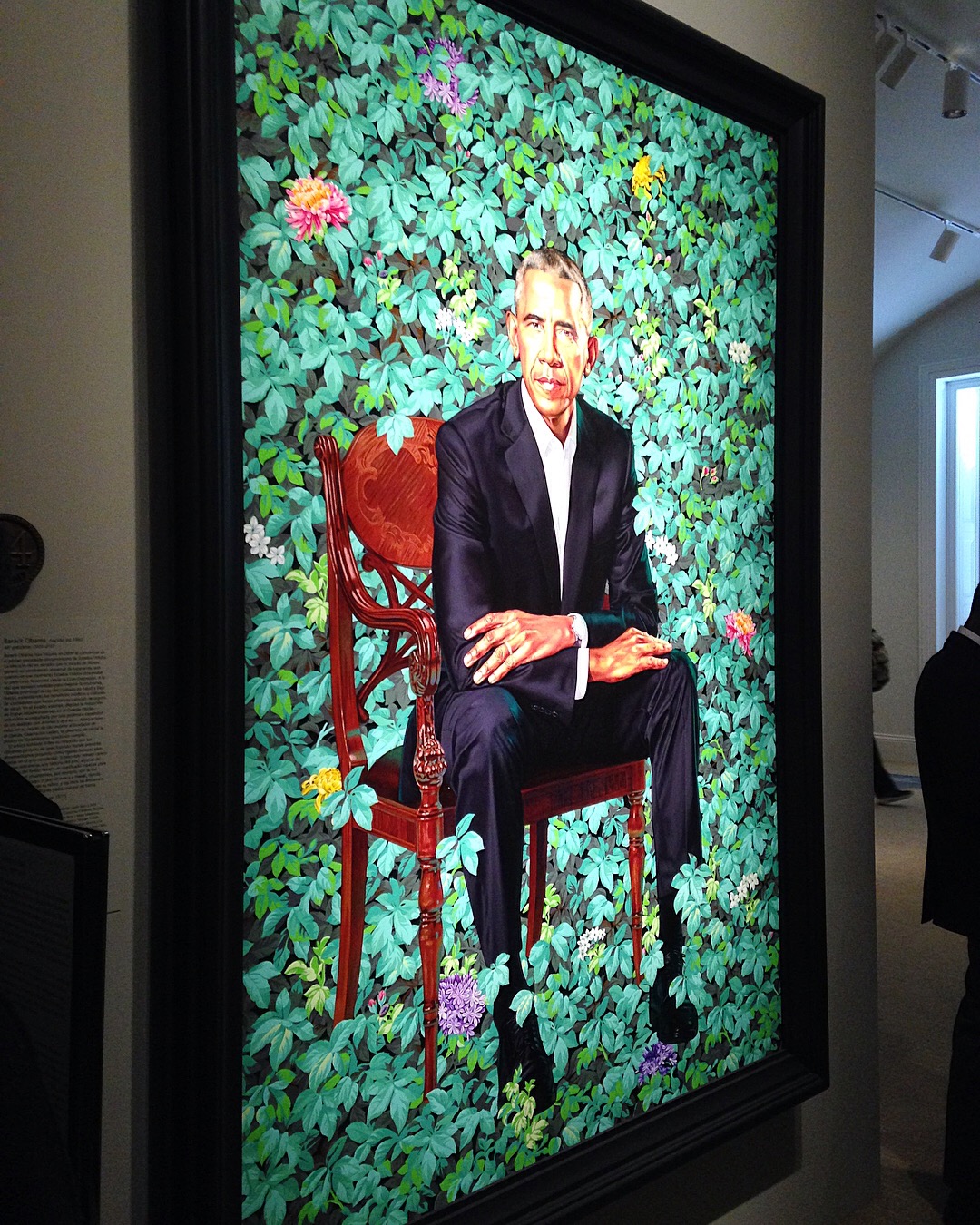 They’ve separated Michelle and Barack to help with crowd control, and it seemed to be working. When the doors opened we went straight to the third floor to see Michelle, then worked our way down to the Hall of Presidents to see the portraits there. It was my first time in this museum, and I loved it. I also loved seeing the lines of people waiting to see the new portraits hanging there.