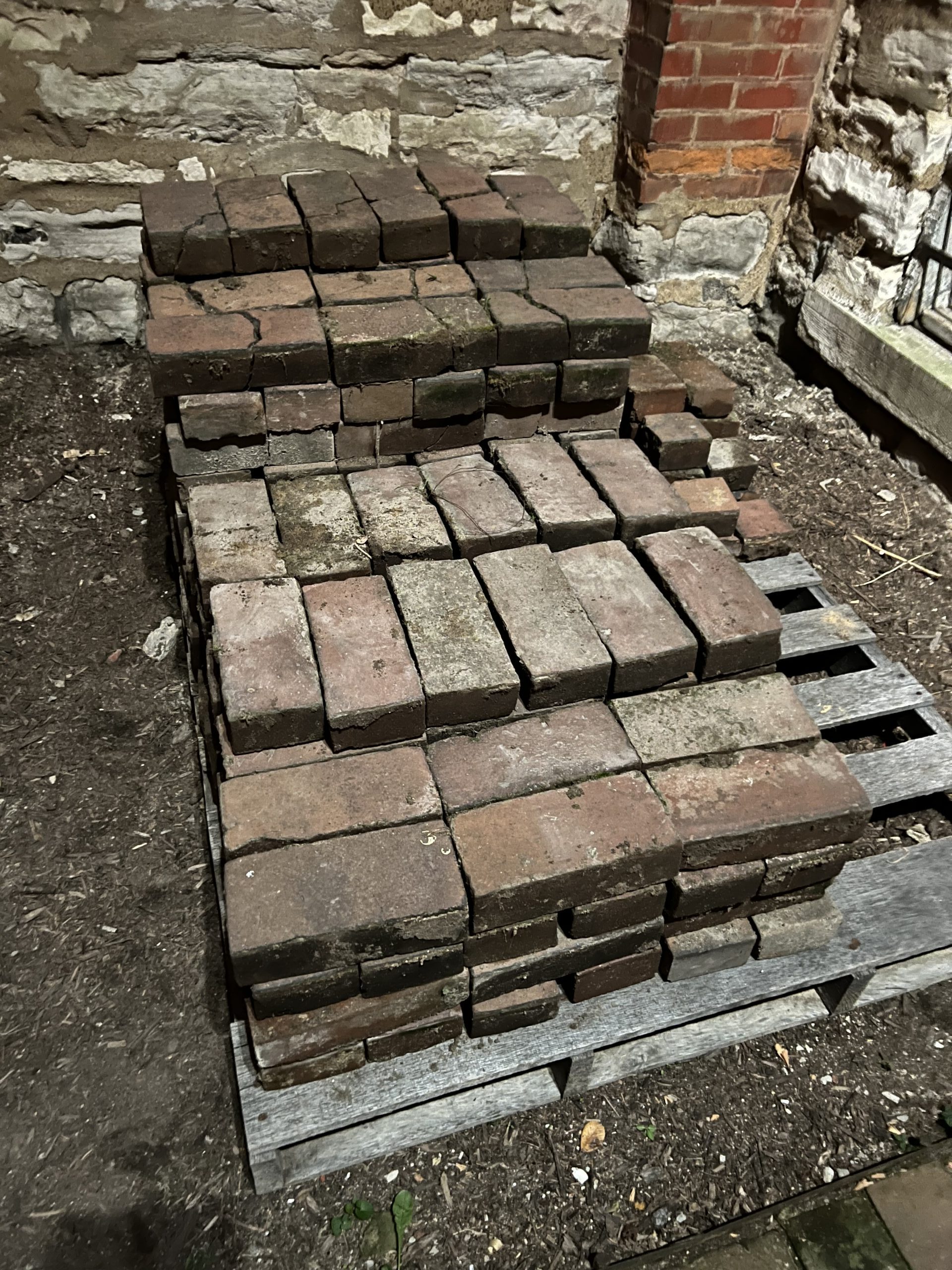 We did ask him if we could use the space to store our brick pavers during construction, and he agreed. So I’ve started moving pavers from the backyard to this area.